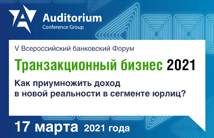 V Всероссийский банковский форум "Транзакционный бизнес 2021. Как приумножить доход в новой реальности в сегменте юрлиц?"
