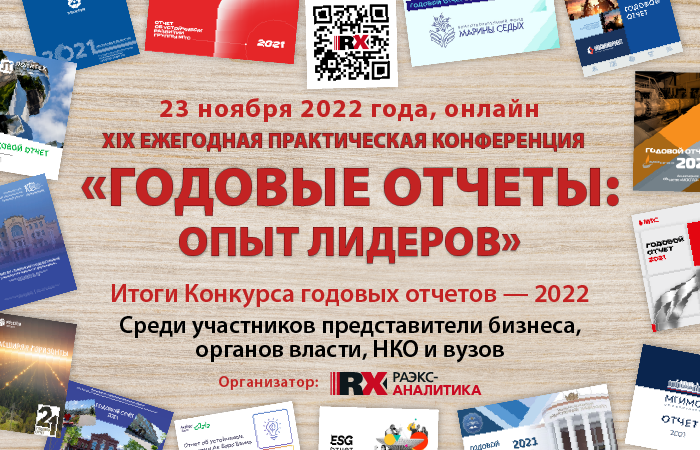 На конференции будут представлены: аналитическое исследование "Лучший опыт и тенденции в годовой отчётности", рейтинг годовых отчётов компаний России и СНГ за 2021 год, а также рейтинги годовых отчётов "некоммерческого" сектора (вузы, НКО и других).