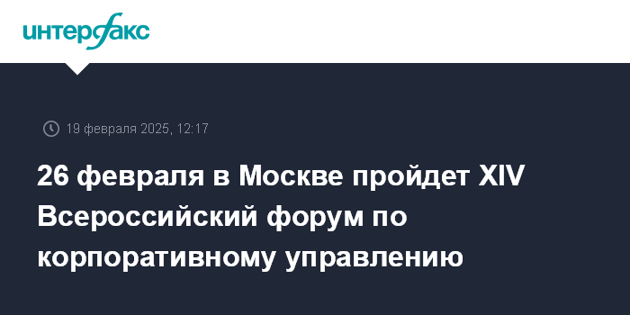 26 февраля в Москве пройдет XIV Всероссийский форум по корпоративному управлению