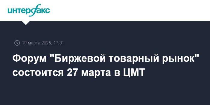 Форум "Биржевой товарный рынок" состоится 27 марта в ЦМТ