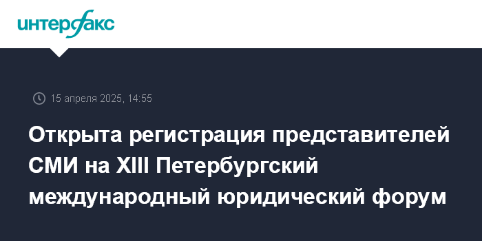 С 15 апреля по 01 мая 2025 г. открыта онлайн-регистрация представителей средств массовой информации на все дни проведения XIII Петербургского международного юридического форума.