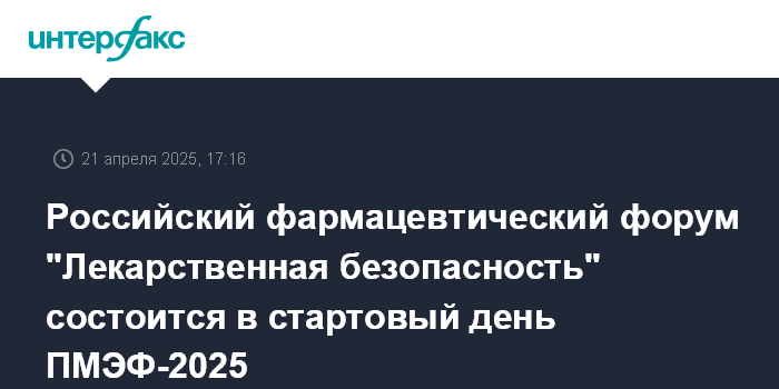 Российский фармацевтический форум "Лекарственная безопасность" состоится в стартовый день ПМЭФ-2025