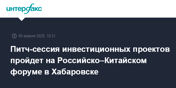 Питч-сессия инвестиционных проектов пройдет на Российско–Китайском форуме в Хабаровске