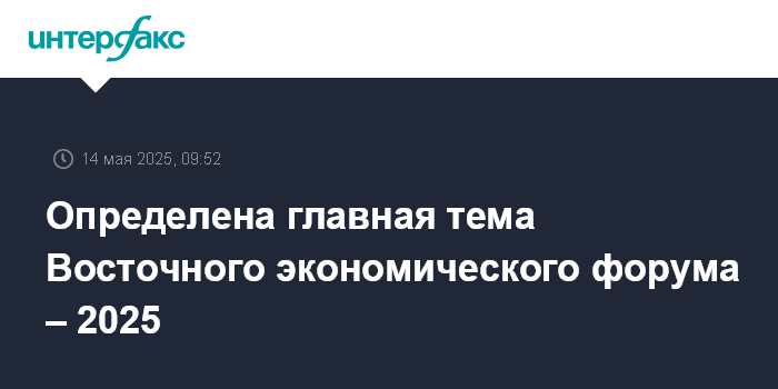 Определена главная тема Восточного экономического форума – 2025