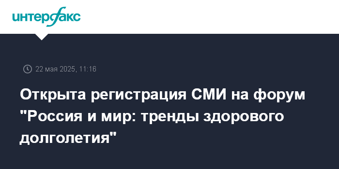 С 19 мая по 25 мая открыта онлайн-регистрация представителей средств массовой информации и блогосферы на форум "Россия и мир: тренды здорового долголетия".