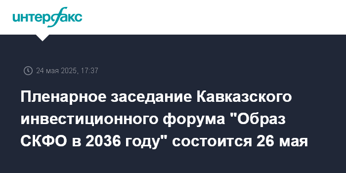Пленарное заседание Кавказского инвестиционного форума "Образ СКФО в 2036 году" состоится 26 мая