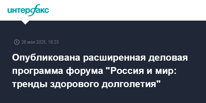 На официальном сайте форума "Россия и мир: тренды здорового долголетия" опубликована расширенная деловая программа с участниками. Мероприятие состоится 27–28 мая 2025 года на площадке Дома правительства Московской области. Организаторами мероприятия выступают Правительство Российской Федерации, Фонд Росконгресс, Правительство Московской области, Министерство науки и высшего образования Российской Федерации.