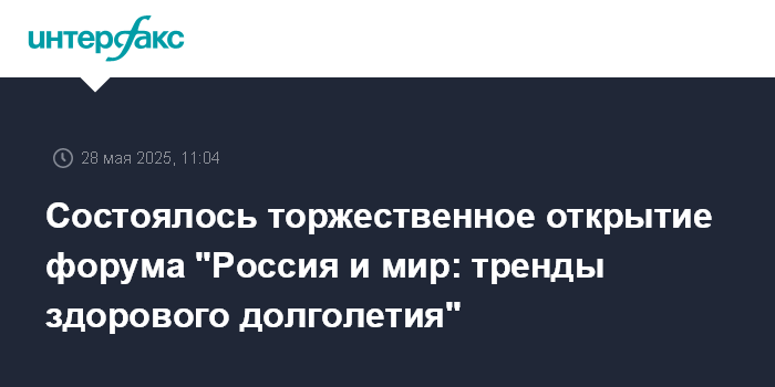 27 мая 2025 года состоялось торжественное открытие форума "Россия и мир: тренды здорового долголетия". Организаторами мероприятия выступают Правительство Российской Федерации, Правительство Московской области, Фонд Росконгресс, Министерство науки и высшего образования Российской Федерации.