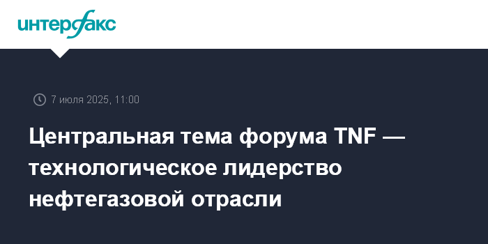 15–18 сентября 2025 года в Тюмени состоится X Промышленно-энергетический форум TNF — событие для лидеров и экспертов топливно-энергетического комплекса России. Центральная тема юбилейного форума — "Технологическое лидерство: объединяя усилия". Решение о выборе темы было принято организационным комитетом под председательством министра промышленности и торговли РФ Антона Алиханова.