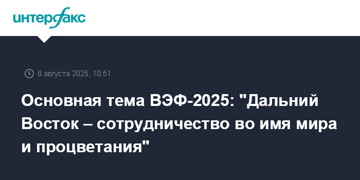 Основная тема ВЭФ-2025: "Дальний Восток – сотрудничество во имя мира и процветания"