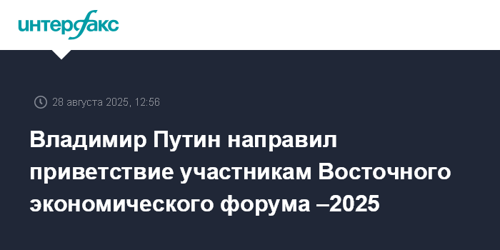 Президент РФ Владимир Путин направил приветствие участникам, организаторам и гостям юбилейного, десятого Восточного экономического форума, который состоится во Владивостоке 3–6 сентября.
