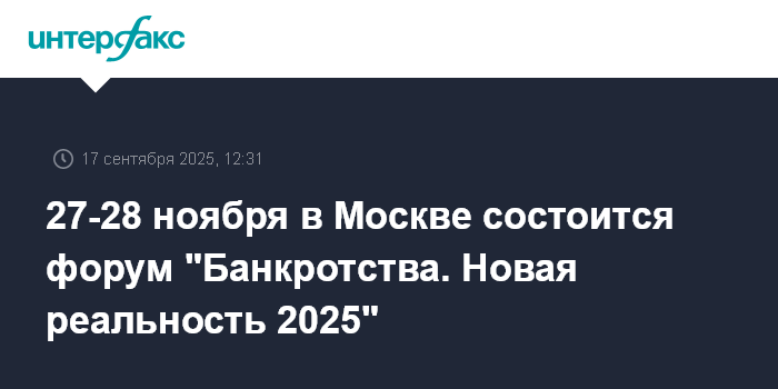 27-28 ноября в Москве состоится форум "Банкротства. Новая реальность 2025"