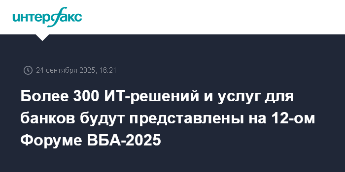 Более 300 ИТ-решений и услуг для банков будут представлены на 12-ом Форуме ВБА-2025