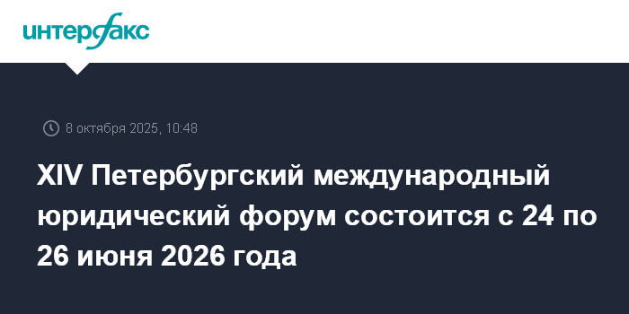 XIV Петербургский международный юридический форум состоится с 24 по 26 июня 2026 года
