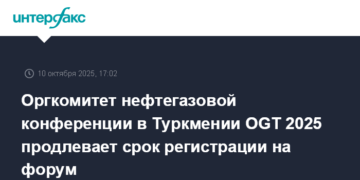 Организационный комитет 30-й международной конференции и выставки "Нефть и газ Туркменистана - OGT 2025" объявил о продлении срока регистрации до понедельника, 13 октября 2025 года.