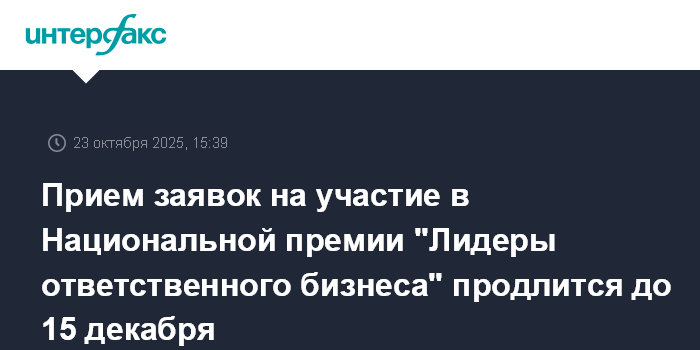 Приём заявок компаний на участие в Национальной премии "Лидеры ответственного бизнеса", стартовавший 20 октября, продлится до 15 декабря 2025 года. Процесс организован через электронную платформу на сайте РСПП.