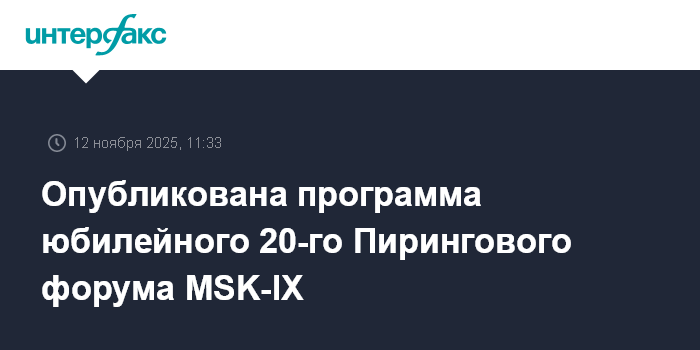 20 Пиринговый форум MSK-IX состоится 17 ноября 2025 года в Конгресс-центре ЦМТ (Москва, Краснопресненская наб., 12) и соберёт более 800 представителей ведущих телекоммуникационных, ИТ- и медиакомпаний.