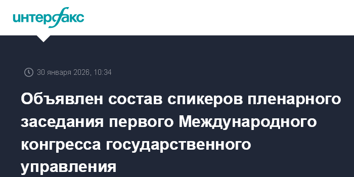 Стали известны имена участников пленарной сессии, которая 10 февраля 2026 года откроет в Москве первый Международный конгресс государственного управления.