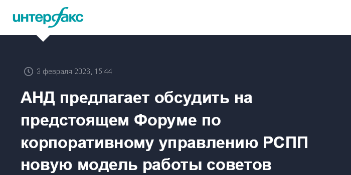 Площадкой для обсуждения и верификации новых подходов АНД планирует сделать XV Всероссийский форум "Совет директоров 3.0", который пройдет 19 февраля 2026 года в Москве. Мероприятие, организуемое АНД совместно с Российским союзом промышленников и предпринимателей (РСПП) в рамках Недели российского бизнеса, соберет более 500 первых лиц – собственников, председателей и членов советов директоров. Участники форума сосредоточатся на ключевых блоках: эволюция роли советов, стратегии владения и преемственности, управление в цифровую эпоху, новая модель компетенций директоров.