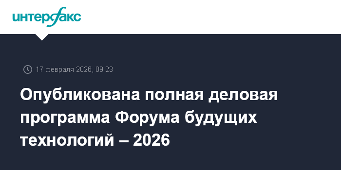Полная деловая программа Форума будущих технологий – 2026 опубликована на сайте мероприятия. Форум состоится 25–26 февраля в Центре международной торговли в Москве. Главная тема – "Биоэкономика для человека". В рамках ФБТ пройдет более 30 тематических сессий и панельных дискуссий с участием более чем 100 спикеров. Центральным событием деловой программы станет пленарное заседание. Мероприятие проводится при поддержке Правительства Российской Федерации. Организатор – Фонд Росконгресс.