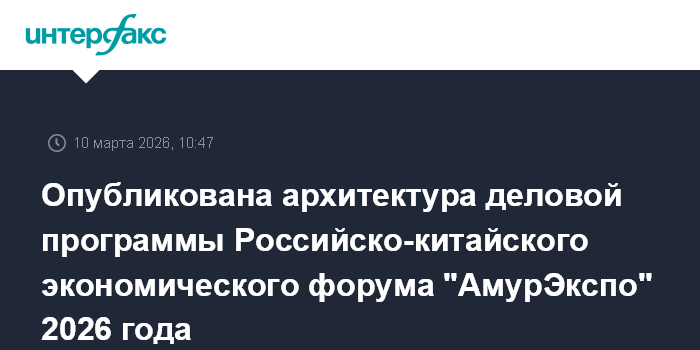 Опубликована архитектура деловой программы Российско-китайского экономического форума "АмурЭкспо" 2026 года