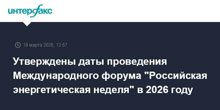 Утверждены даты проведения Международного форума "Российская энергетическая неделя" в 2026 году