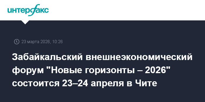 Забайкальский внешнеэкономический форум "Новые горизонты – 2026" состоится 23–24 апреля в Чите