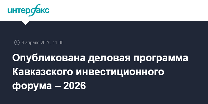 На сайте Кавказского инвестиционного форума, который состоится с 28 по 30 апреля 2026 года в МВЦ "МинводыЭКСПО", размещена деловая программа. Кавказский инвестиционный форум – это одно из ключевых деловых событий, направленных на развитие инвестиционного потенциала регионов и расширение экономического сотрудничества. Центральной темой Форума станет "Расширяя горизонты возможностей". Организатор Форума – Фонд Росконгресс при поддержке Правительства РФ, Министерства экономического развития РФ и правительства Ставропольского края.
