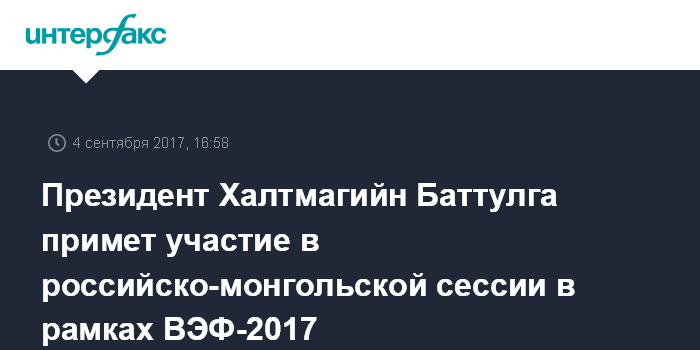 Президент Халтмагийн Баттулга примет участие в российско-монгольской сессии в рамках ВЭФ-2017