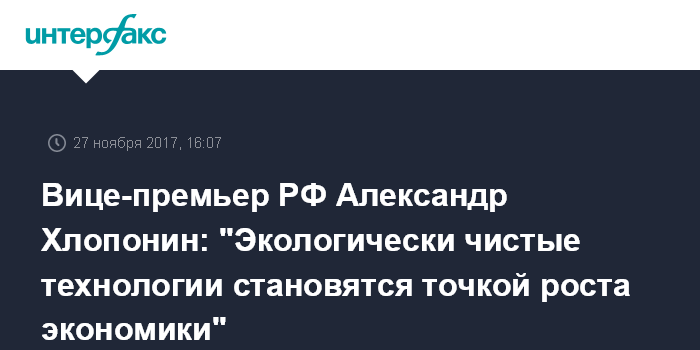 Вице-премьер РФ Александр Хлопонин: "Экологически чистые технологии становятся точкой роста экономики"