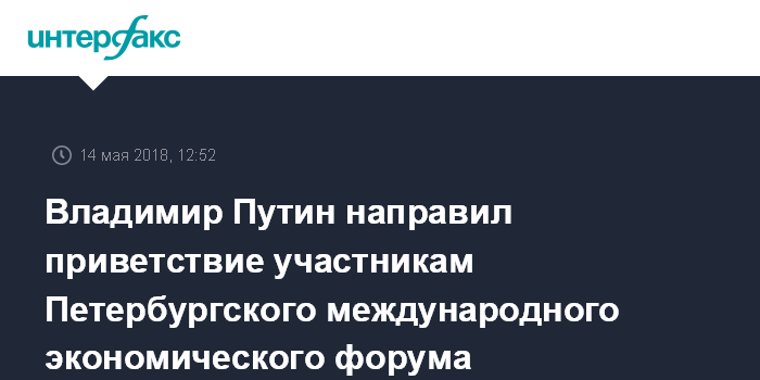 На официальном сайте Владимира Путина размещено приветствие участникам, организаторам и гостям ПМЭФ – 2018, который состоится под девизом "Создавая экономику доверия"