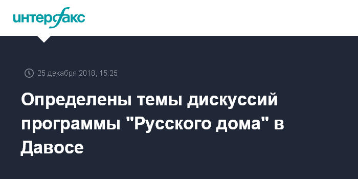 Определены темы дискуссий программы "Русского дома" в Давосе