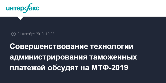 Совершенствование технологии администрирования таможенных платежей обсудят на МТФ-2019