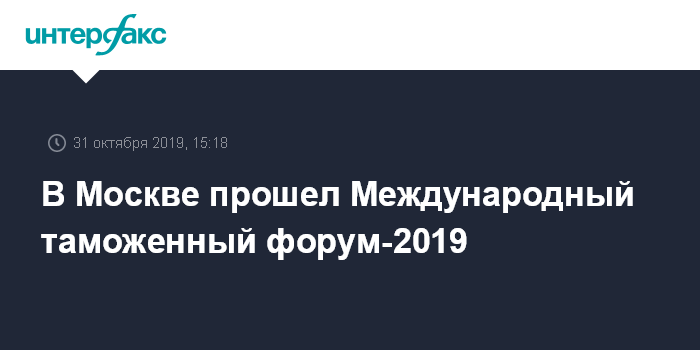 24-25 октября 2019 года в Москве в Центре международной торговли прошел Международный таможенный форум – 2019. Форум посетили свыше 2300 участников: представители органов государственной власти и члены деловых кругов России, более 150 представителей иностранных делегаций из 32 стран, четырех международных организаций; свыше 50 журналистов из 30 деловых и специализированных СМИ.