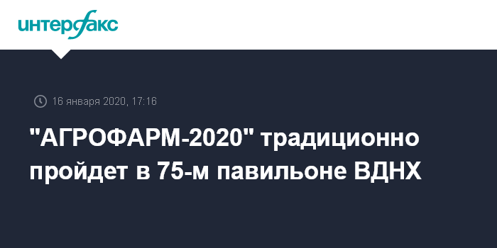 "АГРОФАРМ-2020" традиционно пройдет в 75-м павильоне ВДНХ