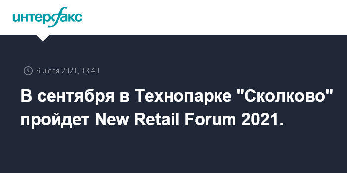 В сентября в Технопарке "Сколково" пройдет New Retail Forum 2021.