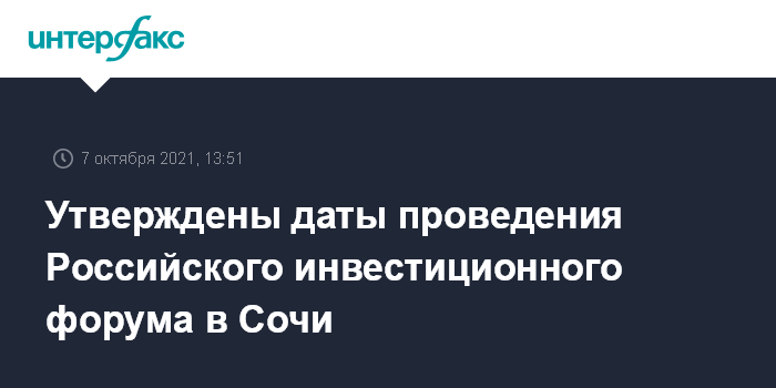 Утверждены даты проведения Российского инвестиционного форума в Сочи