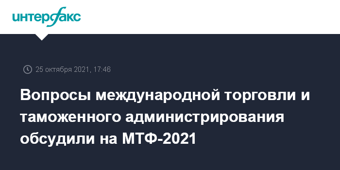 Вопросы международной торговли и таможенного администрирования обсудили на МТФ-2021
