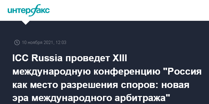 2 декабря 2021 года Российский национальный комитет Международной торговой палаты (ICC Russia) совместно с Международным арбитражным судом ICC проведет XIII международную конференцию "Россия как место разрешения споров: новая эра международного арбитража". Пандемия, санкции, политическая нестабильность в различных регионах – эти и ряд других факторов стали причинами новых вызовов для международной торговли и в определенной степени способствовали увеличению числа арбитражных разбирательств. Согласно статистике, в 2020 году Международный арбитражный суд ICC зарегистрировал максимальное количество новых дел на рекордные суммы. Что нового произошло за последние два года в арбитражном разбирательстве? Ведущие международные эксперты суммируют и проанализируют опыт работы в период пандемии COVID-19, итогом которого стали новые регламенты, новые подходы и новые цифровые продукты в международном арбитраже. Конференция пройдет в гибридном формате (офлайн с возможностью онлайн подключения).