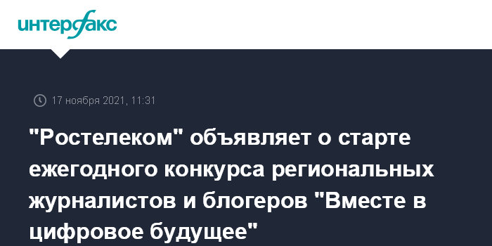 "Ростелеком" объявляет о старте ежегодного конкурса региональных журналистов и блогеров "Вместе в цифровое будущее"