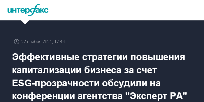 17 ноября 2021 года в Москве состоялась конференция "ESG-прозрачность российских компаний: как достичь, оценить и заработать?", организованная рейтинговым агентством "Эксперт РА" и аналитической компанией "Эксперт Бизнес-Решения".