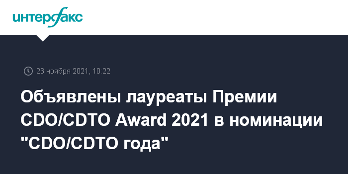 До конца февраля 2022 года продолжается прием заявок на соискание Премии CDO/CDTO Award 2021 в следующих номинациях: Лучшая программа повышения квалификации CDO, Цифровизация в государственных и муниципальных органах управления, Digital University, Лучшая платформа для онлайн-образования, Лучшая программа онлайн-образования, Digital-трансформация года, Digital-платформа года, Компания с лучшей Digital-культурой, Digital-решение года, Digital-проект года, Smart City, Цифровой регион, Digital-стартап года.