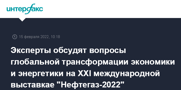 Эксперты обсудят вопросы глобальной трансформации экономики и энергетики на XXI международной выставкае "Нефтегаз-2022"