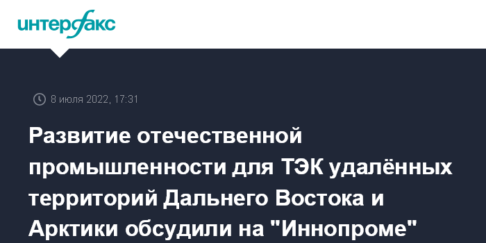 В рамках международной промышленной выставки "Иннопром-2022" состоялась панельная сессия на тему "Развитие распределённой генерации на Дальнем Востоке и в Арктике как вызов для отечественной промышленности". Мероприятие организовали Корпорация развития Дальнего Востока и Арктики, подведомственная Минвостокразвития России, и Общероссийская общественная организация малого и среднего предпринимательства "ОПОРА РОССИИ" в рамках подготовки к Восточному экономическому форуму. Напомним, ВЭФ пройдет во Владивостоке с 5 по 8 сентября 2022 года. Оператором форума выступает Фонд Росконгресс.