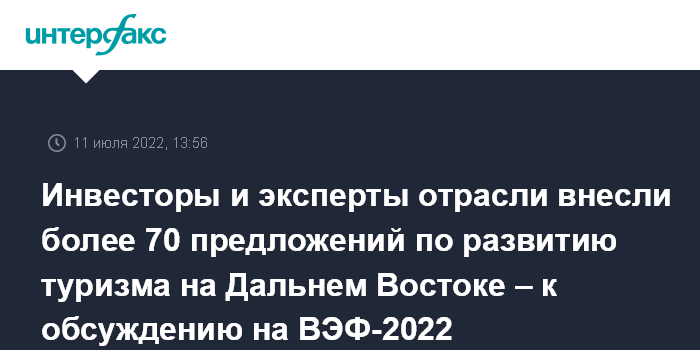 Инвесторы и эксперты отрасли внесли более 70 предложений по развитию туризма на Дальнем Востоке – к обсуждению на ВЭФ-2022