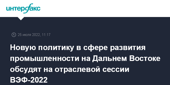 Новую политику в сфере развития промышленности на Дальнем Востоке обсудят на отраслевой сессии ВЭФ-2022