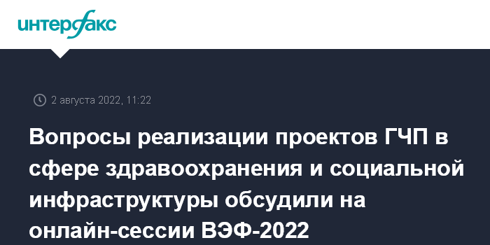 Вопросы реализации проектов ГЧП в сфере здравоохранения и социальной инфраструктуры обсудили на онлайн-сессии ВЭФ-2022