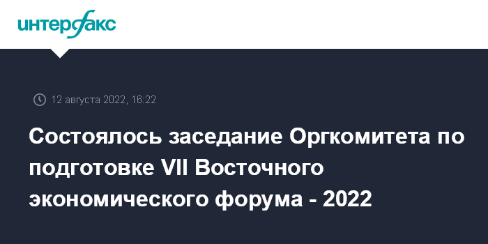 Состоялось заседание Оргкомитета по подготовке VII Восточного экономического форума - 2022