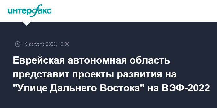 Еврейская автономная область представит проекты развития на "Улице Дальнего Востока" на ВЭФ-2022