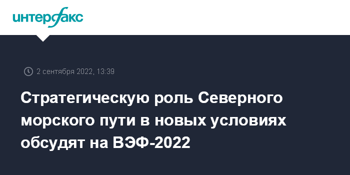 6 сентября 2022 года в рамках деловой программы VII Восточного экономического форума, который пройдет во Владивостоке с 5 по 8 сентября, состоится деловая сессия "СМП: быстрее, надежнее, эффективнее", посвященная роли Северного морского пути в текущих геополитических и экономических условиях. Участники сессии обсудят перспективы запуска круглогодичной навигации по Северному морскому пути (СМП), создание инфраструктуры для его устойчивой работы как национального морского транспортного коридора между Дальним Востоком и европейской частью страны.